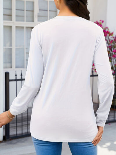 Ruched V-Neck Long Sleeve T-Shirt